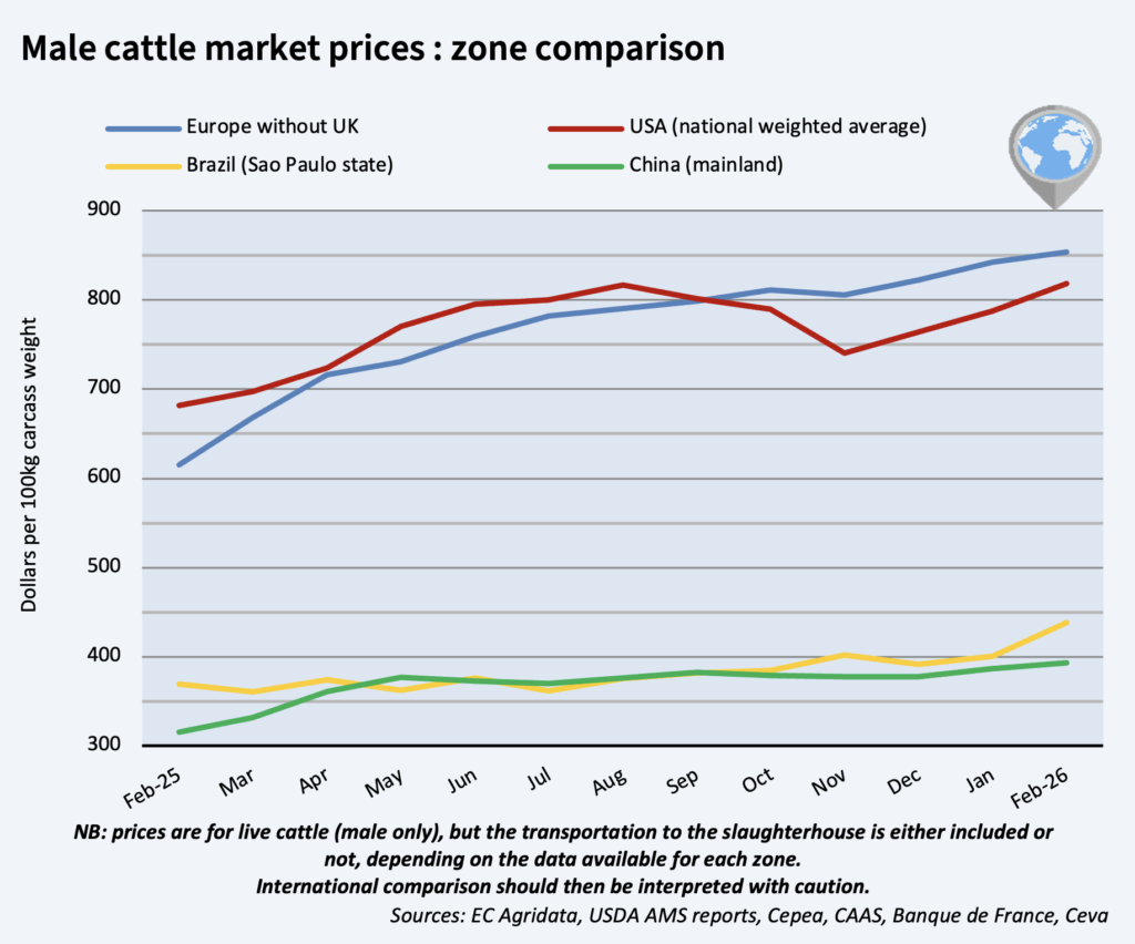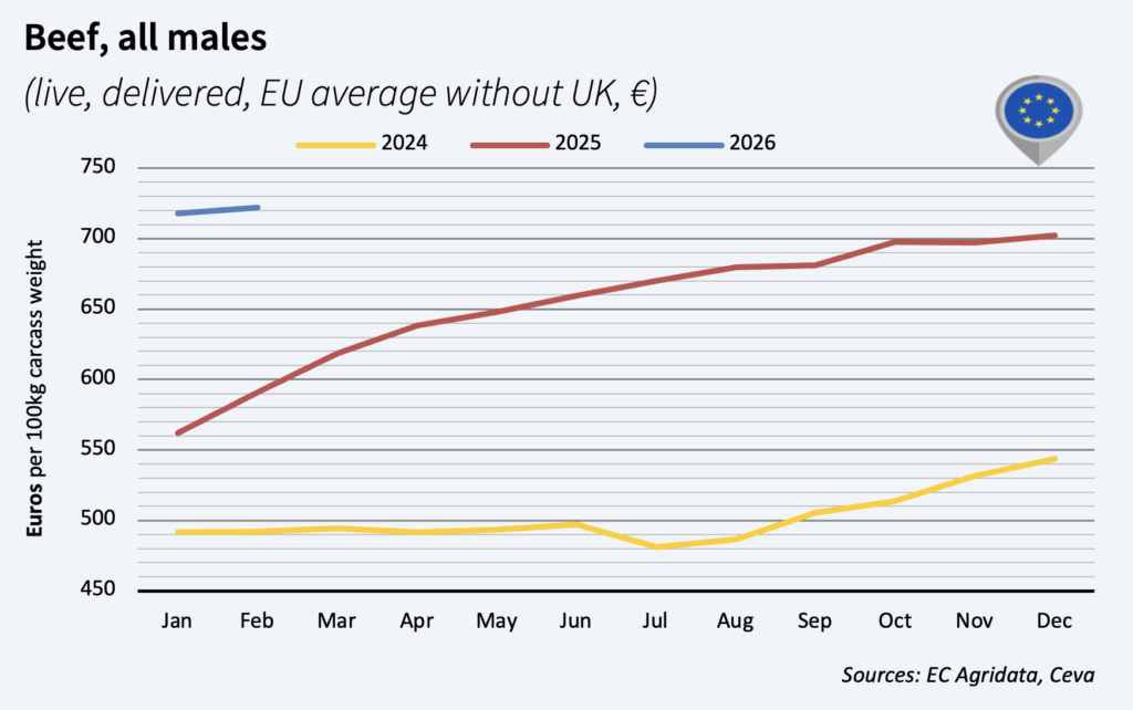 Welcome to the Beef Market Outlook March 2026, your monthly update on global beef markets and price trends. This edition analyses February 2026 data, covering the latest shifts in beef production, cattle prices, and export dynamics across Europe, Brazil, China, and the United States. With clear, data-driven insights, we highlight the key factors influencing global supply and demand, trade flows, and overall market profitability.